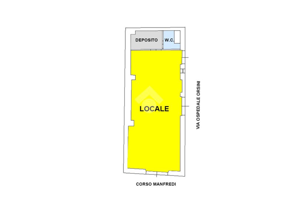 CORSO MANFREDI : locale ad uso commerciale in zona centrale e di passaggio con ampie vetrine ed esposizione angolare, libero subito. Canone mensile di locazione.