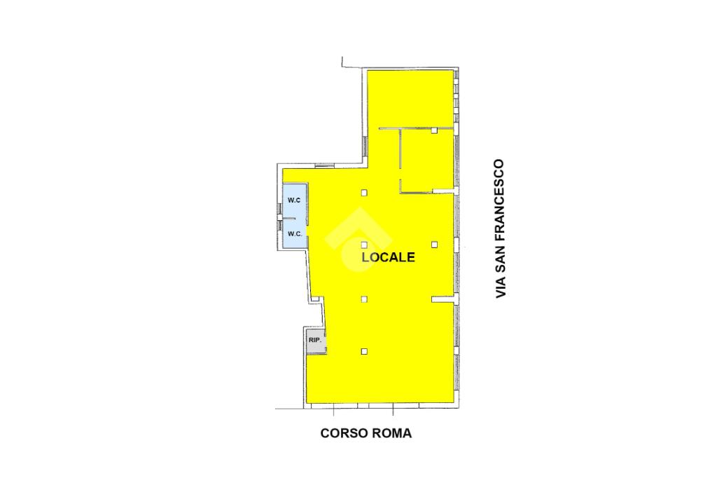COSA SAPERE SULL'IMMOBILE: con una superficie di 280 mq, il locale si presta ideale per uso ufficio, studi associati o spazi di coworking. Situato a piano terra, questo spazio angolare offre un accesso privilegiato con ingresso da Corso Roma e cinque vetrine su Via San Francesco, garantendo una visibilità eccellente. L'immobile si presenta in buono stato di manutenzione sia negli impianti sia nelle rifiniture.